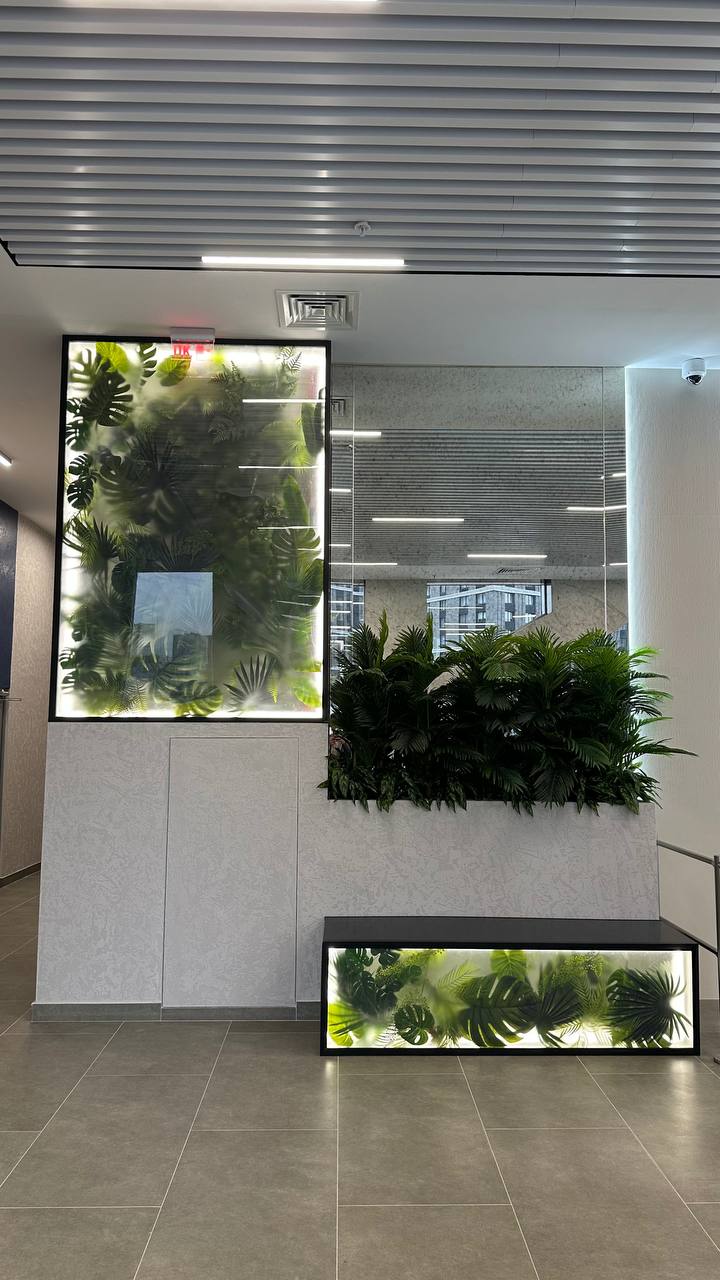 Озеленение панелями из искусственных растений + разработка конструкций